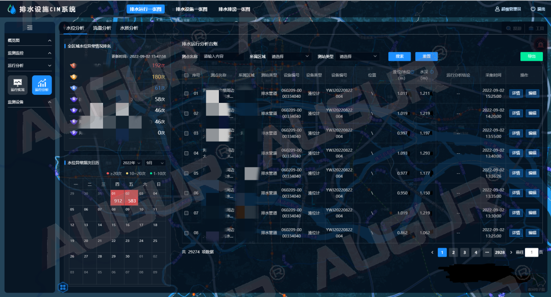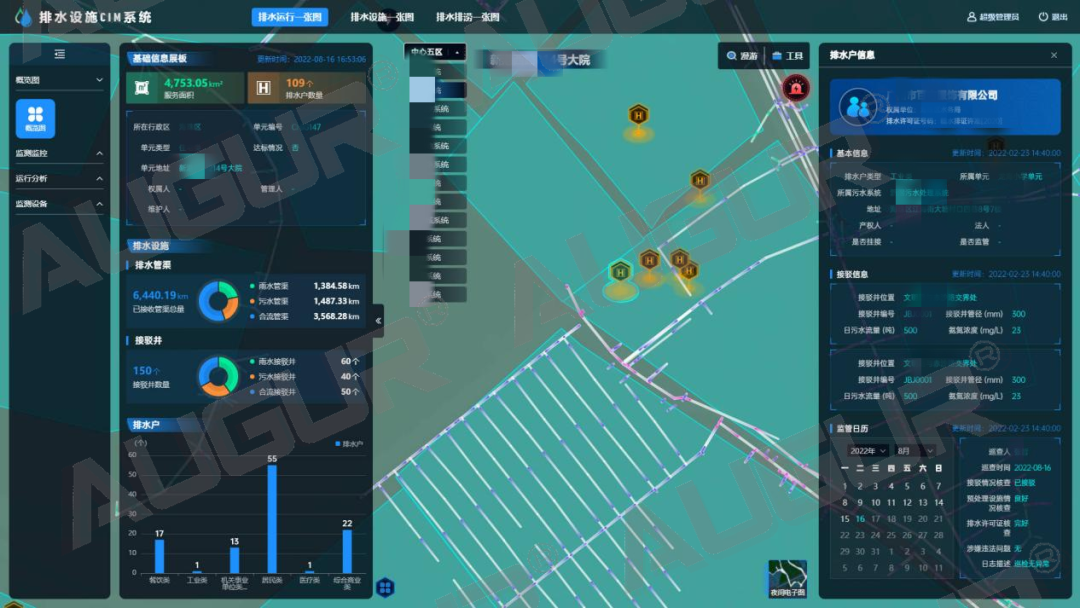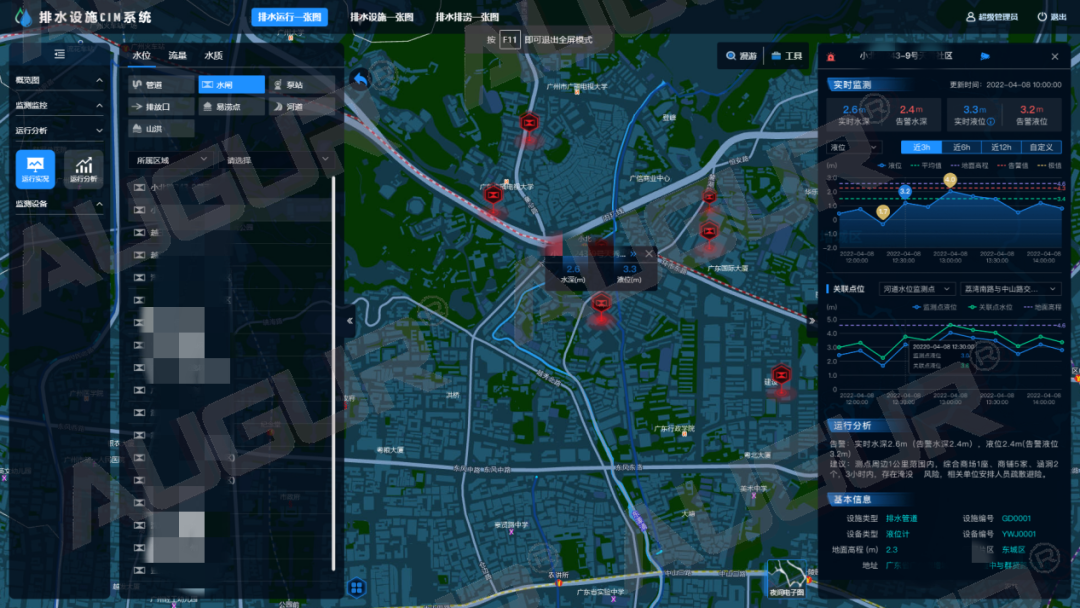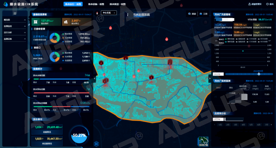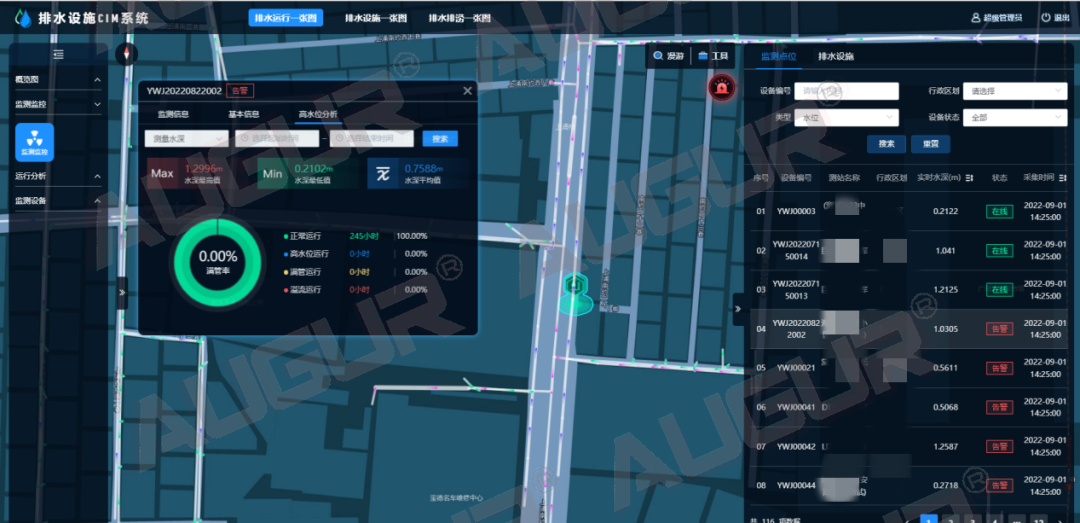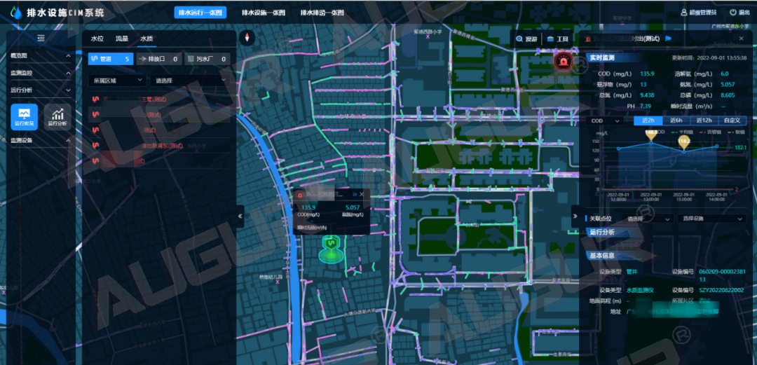 智慧水务|排水运行监测,为城市管网把脉发表时间:2022-09-26 14:14 经过多年快速建设,我国城镇污水处理设施不断完善,根据《2020年城乡建设统计年鉴》,截至2020年底,全国城市污水处理厂2618座,城市污水处理率97.53%,城市排水管道长度80.27万公里,建成区排水管道密度11.11公里/平方公里。可以说,绝大多数城市现有污水处理厂的处理能力基本上可以满足城镇居民生活排水的处理要求,但排水管网不健全、不完善、管网质量差、运行不规范、养护不及时等导致的收集效能低下已经成为影响排水行业发展和质量提升关键痛点。 三亿体育排水设施CIM系统(AWater D-CIM)排水运行一张图以实时反馈管网运行状况动态为目标,结合实时监测、巡检巡查、管网拓扑分析和水力分析等多种手段,“望闻问切”寻病因,及时发现管网短板及运行异常,实现排水设施的精细管理,保障城市排水管网健康规范运行。 宏观看板层层钻取- 动态监测管网信息 以城市排水管网动态拓扑图为业务支撑,通过地图图层与图表结合的形式,逐级查看区域-污水系统-排水单元-排水户的动态数据监测情况,层层关联,呈现管网运行整体态势。