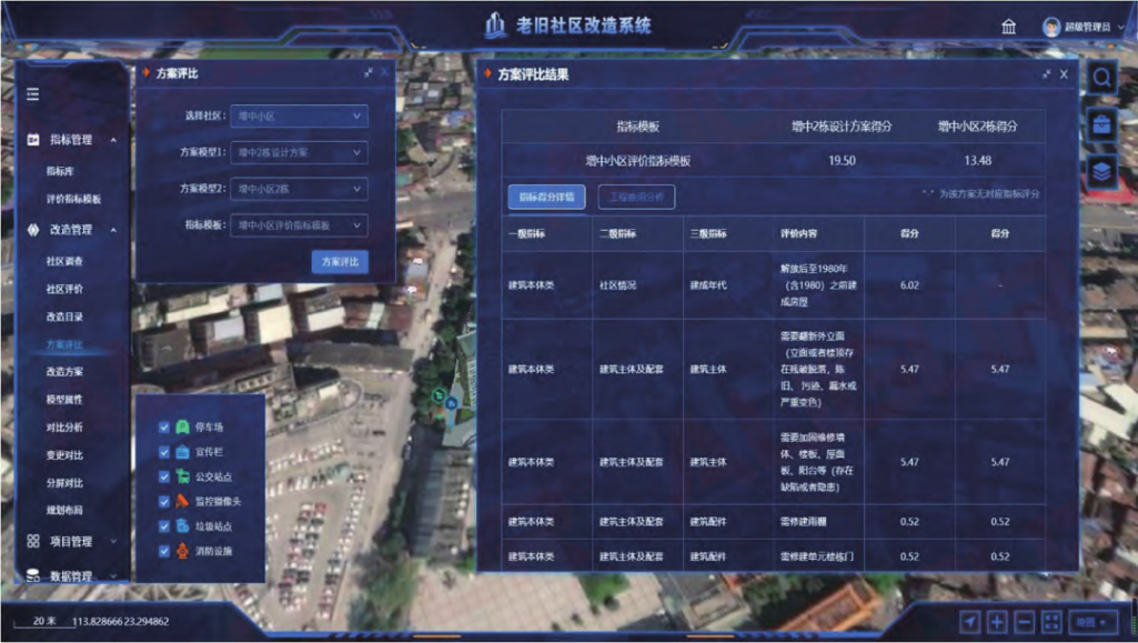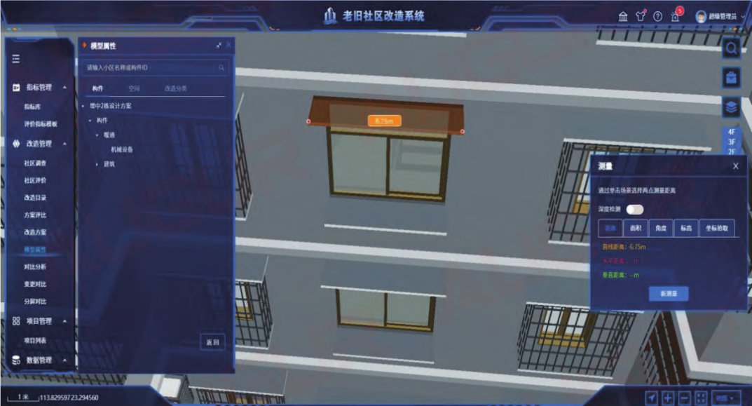 观点 | 基于CIM技术的老旧小区改造系统研究与设计发表时间:2022-03-28 14:06 来源丨 电子技术与软件工程杂志 2021年12月下作者丨 许浩 谢胜波 李惠 蔡明豪 张明婕为了解决老旧小区改造中的“粗颗粒度”决策、成本估算效率低、评价指标停留在纸面等问题,实现老旧小区改造项目全过程管理、改造方案的比选优化以及小区的科学治理,笔者以老旧小区改造现状中遇到的问题为切入口,提出基于 CIM 技术的老旧小区改造系统设计思路以及应用成效和未来展望。我国老旧小区改造现状及CIM技术应用01、我国老旧小区改造现状随着我国社会经济的持续发展和物质生活水平的显著提高,人民对美好生活的需求不断提高,20 世纪八九十年代建成的老旧小区在满足居民的基本生活需求方面面临着越来越多的挑战。据统计,我国有老旧小区约17 万个,建筑面积约40 亿平方米,涉及约4200 万户居民,约占全国存量住宅的12%。为提升老旧小区质量,改善居民居住条件,2015 年 12 月,在中央城市工作会议中提出要加快老旧小区改造,标志着我国老旧小区改造工作正式拉开序幕。2020 年全国新开工改造城镇老旧小区共40279 个,惠及居民约735.73 万户。老旧小区改造是一项系统工程,涉及方方面面,在实际操作中面临现状不清、定量分析评估不准、改造方案决策及预期成效不明等难题,导致老旧小区改造工作尤其是隐蔽工程改造面临诸多挑战。02、CIM在老旧小区改造中的应用城市信息模型(CIM)是物理城市在三维数字空间实时全映射的呈现载体和窗口,是基于数字孪生的城市信息有机综合体。CIM技术在老旧小区改造中的应用是基于 CIM 平台底图,将改造工作中需要的改造范围、地形、土地、道路与基础设施、建筑、相关规划和设计方案等进行三维数字化处理和表达,同时结合小区经济情况、人口资料、土地房屋权属、设施运行状况等数据,实现老旧小区改造项目的全过程管理。基于CIM的老旧小区改造系统设计01、系统总体架构基于CIM的老旧小区改造系统,是一个依托 CIM 平台提供基础功能及服务,聚焦于城市老旧小区“微改造”业务需求研发的三维数字化管理系统。开发框架老旧小区改造后台系统所应用的技术是基于 Java 的 , 前端则使用 vue 实现。采用 B/S 架构使系统能集中部署分布使用,有利于系统升级维护;采用 MVC 的开发模式并参考 SOA 体系架构进行功能设计,根据实际业务量进行功能扩容,系统功能隔离运行,保障系统整体运行的稳定性。功能模块架构根据 CIM 在老旧小区改造中的应用场景,结合老旧小区改造项目的管理需求,将老旧小区改造系统划分为指标管理、项目管理、改造管理、数据管理和图层管理 5 个模块,如图 1 所示。 |