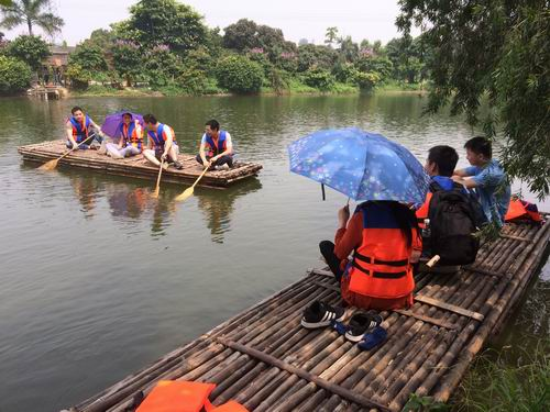 长洲岛阳光农庄欢乐一日游发表时间:2014-06-26 15:01 由于天气、假期等种种原因而一直往后拖延的部门活动,终于在2014年6月16日举行,活动地点:长洲岛阳光农庄。因自己住的地方离目的地有相当一段距离,必须要早起坐车,但对于我这个起床困难户来说,要在周日一大早起床真的是极其痛苦的一件事,于是在前一天晚上就设定了4个闹钟。 第二天终于在闹钟都响完后,睡眼朦胧、极不情愿地爬起来去洗刷刷,经过半个小时的磨蹭,终于在7点半时搭乘上地铁。在8点50分的时候有同事打电话来说已经到了目的地了,还说那儿离地铁站还有近一个小时的车程,听到这里心里那个急呀,于是加快步伐。在出了地铁等公交的时候跟几个同事碰了个正着,悬着的心落了下来,下车后已是9点40分,根据指示牌沿着小路朝着目的地前进,小路两边是一片片的果园,挂满了未成熟杨桃、龙眼、黄皮,但已看的我直吞口水。大约走了六七百米,到达目的地,跟早到的伙伴们汇合了! 这时的气温已经开始有点炎热,对周围的环境熟悉了一下后,决定首先体验水上竹筏项目,在听完工作人员的讲解后,进行了分队:年长队PK青年队,跟着大家迫不及待地穿上救生衣,开始登上竹筏。原以为青年队肯定会比年长队划的快,谁知青年队的伙伴们不分左右,竹筏向着反方向驶去,好不容易搞清楚了竹筏的行驶原理后,大家又动作不一致,致使刚开始没多久年长队就狠狠的把青年队抛在了后面。当竹筏驶向了湖中心,太阳公公也露出了大大的笑脸,女同志们撑起伞,此刻的大伙都有点乏力了,个个都已大汗淋漓,最后只好停在了湖中小岛的树荫下进行休息,阵阵微风吹来,好不惬意。这个情景让我想起了一句歌词:“小船儿轻轻,飘荡在水中,迎面吹来了凉爽的风”。这时有个同事爬上了小岛,竹筏上的同事恶作剧将竹筏驶开一段距离,留下岛上的同事一个人在那哇哇叫,惹的大家笑成了一片,大约休息了15分钟,大家开始返回湖边,在返程的途中,青年队玩心大起,用浆不停拍打水面,最后的下场就是个个浑身湿透。