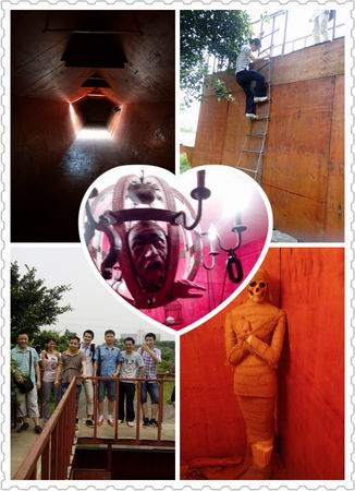 回到岸边,大家意犹未尽,于是准备进行第二个项目:密室大逃脱。这个游戏因为要团队充分合作才能完成,于是也分成2组:明室组(3人)、暗室组(5人),要通过2个大关卡、解开4把锁。在工作人员讲解完毕后即刻进入密室,一进暗室,伸手不见五指,恐惧感骤生,突然有同事说他摸到了东西,然后扯了会,没什么反应,就继续向前摸索,不一会儿有同事在一旁的小屋内找到了灯的开关,屋子顿时亮了起来,然而眼前的景像有点吓人,假人头、假手、木乃伊,最后发现一开始同事摸到的是一个吊在天花板的假骷髅头。然后大家开始找密码线索,在试了多次仍然不成功后,由三亿体育 的BOSS老大出马带领大家合作将第一道密码解锁了。跟着是2组队员共同找到开启第二关卡的钥匙,大家很努力的将里面的东西翻了又翻,将近花了30分钟才把钥匙找到,开启了第二关后进入到了个回廊,里面有2把锁、一把密码锁,一把钥匙锁。凭着三亿体育 团队的智慧很快就将密码锁给破解了,但是三亿体育 把那儿翻了个底朝天都没找到开锁的钥匙,最后凭着激光笔找到了出乎所有人意料的答案。大家都感觉这个密室逃脱还真有点意思。