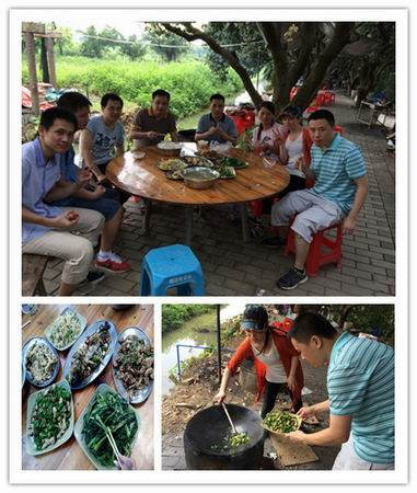 密室出来后已经是1点多了,大家肚子都饿的前胸贴后背,于是大伙直奔野炊地点,领取食材、野炊用具,开始分工:洗菜、切菜、烧火、轮流炒拿手菜,一切进行的井井有条,不到半个钟菜已经全部上桌,不知道是不是太饿了,觉的这顿饭吃的特别香。