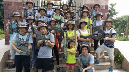 饭后大家去了湖边的树荫下休息,大概3点钟左右,进行了CS真人野战,这个时候碰巧有其他旅客也玩这个项目,于是就协商着一起进行活动,一切装备就绪后,三亿体育 以9人组对抗对方13人组。战斗共有三局,第一局:防守战,三亿体育 很轻易的取胜了。第二局:进攻战,我也因为畏惧不敢乱动,没有主动进攻,这也是令我最遗憾的,加上部署不当,没有成功击溃对方,最终因为时间限制而导致了平局。第三局:歼灭战,吸取了上一局的教训后,此局一开始队长就进行了部署,三亿体育 分组分工,有掩护,有进行攻击的,还有守旗的,分工相当明确,最终全数歼灭对方阵营。